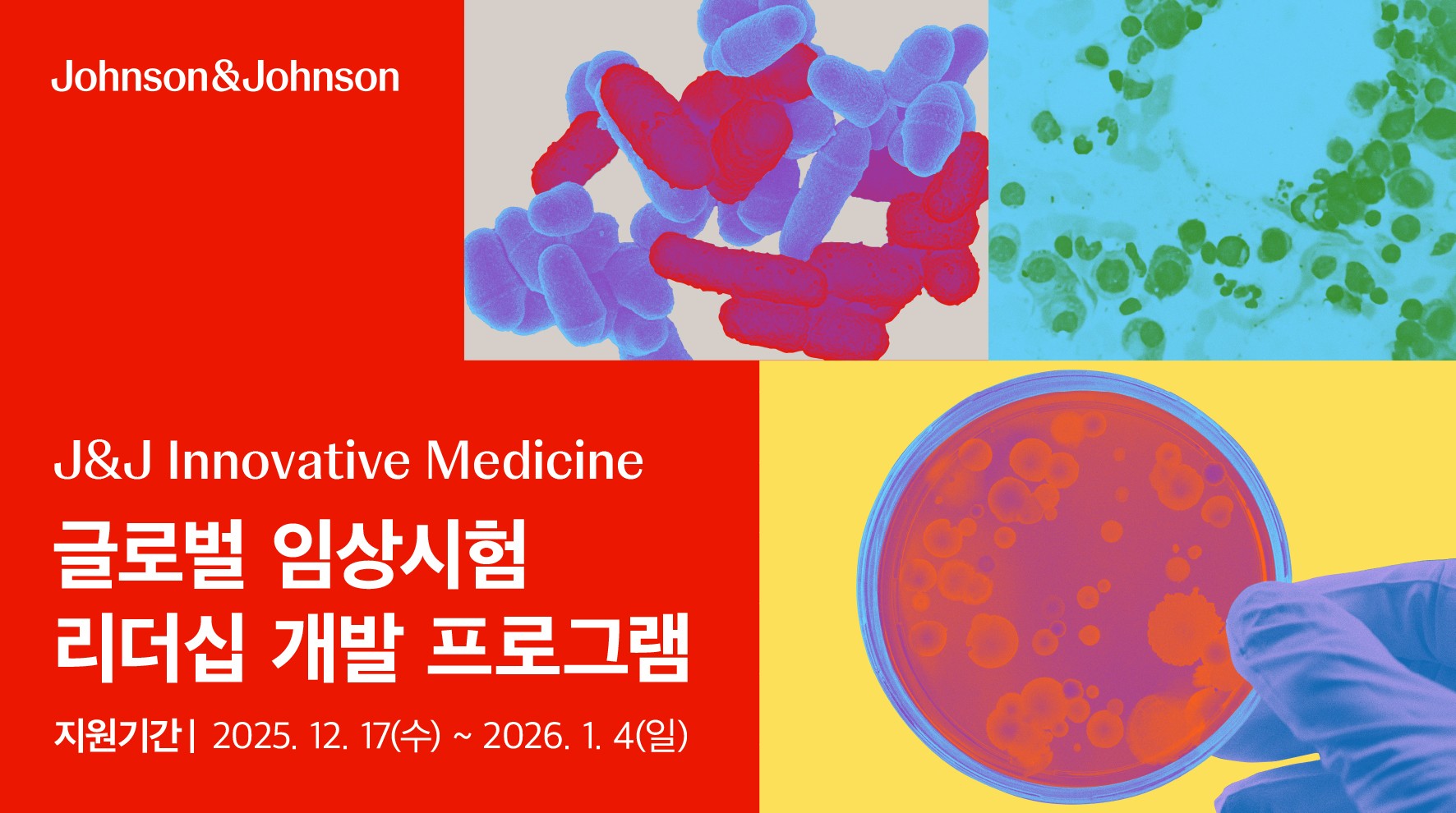 [Johnson&Johnson] 글로벌 임상시험 리더십 개발 프로그램 - 신청기간: 2025.12.17(수) ~ 2026.01.04(일) - 신청방법: Johnson&Johnson 채용 홈페이지를 통한 온라인 지원 |